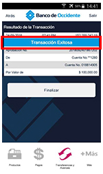 • Ahora desde nuestra Banca Móvil podrás realizar de manera fácil, segura e inmediata transferencias a cuentas Banco de Occidente sin inscripción. Solo debes seguir estos 4 pasos: