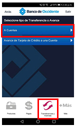 NOTA: Debes tener previamente inscrita la cuenta o cuentas Banco de Occidente, asociadas a una tarjeta Credencial para poder realizar el avance.